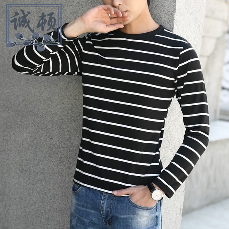 Long Sleeve Men S Striped T Shirt Crew Neck M Xl Shopee Philippines